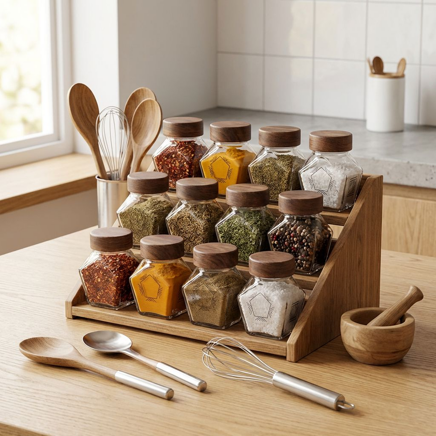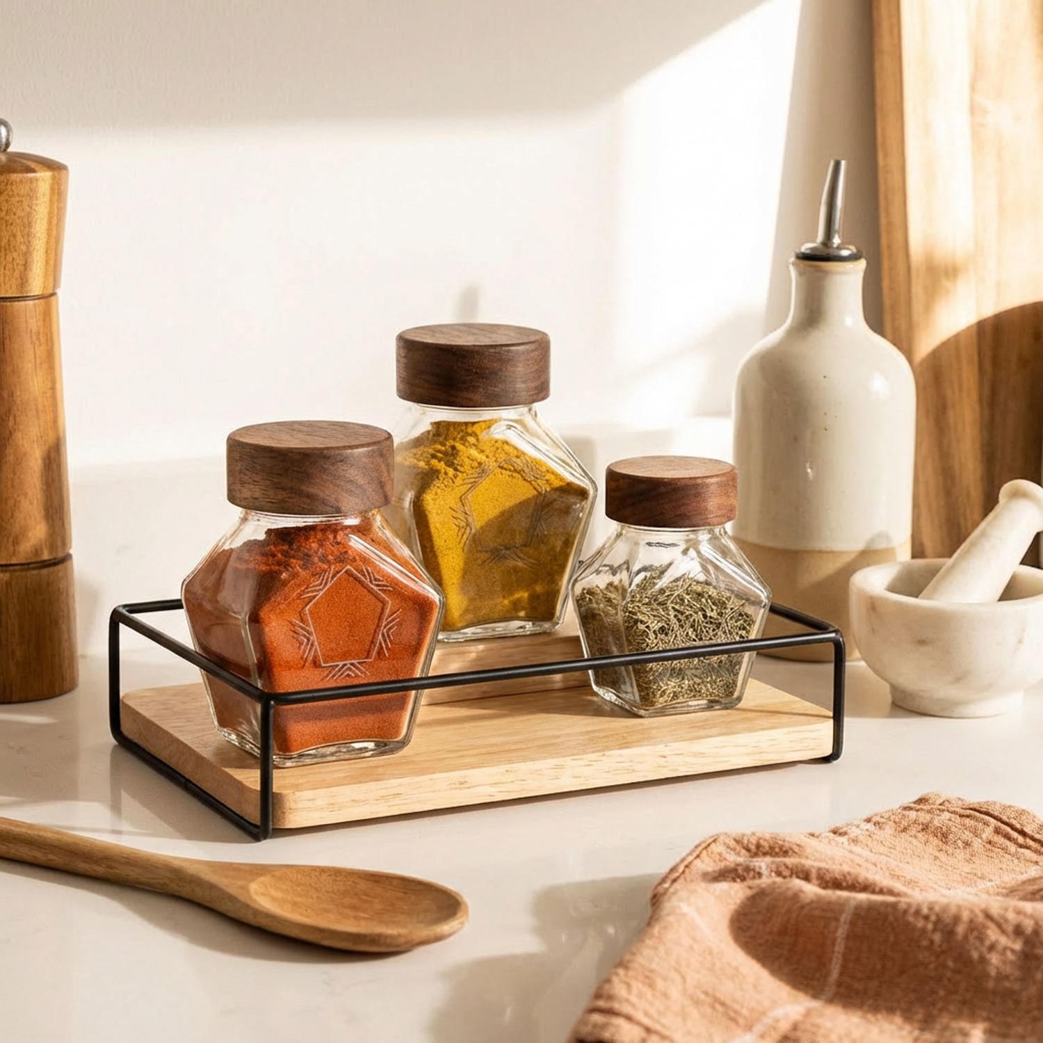 3-Tier Countertop Organizer Shelf | Wooden Shelves with Metal Side Frame | For Kitchen, Bathroom & Desk